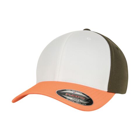 Modern cap. Relaxed style. Tri-coloured design with pre-curved visor. Integrated rubber band.