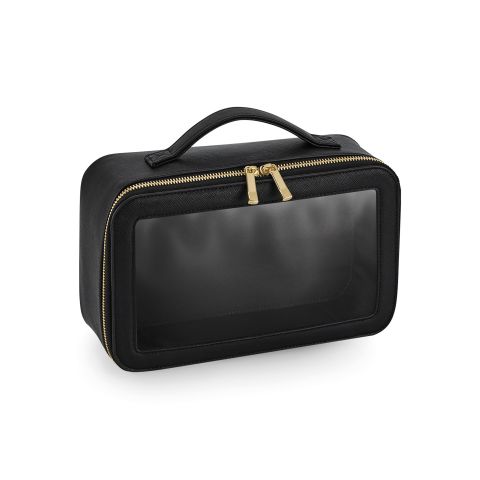 Every product in our Boutique collection combines soft, fine grain Saffiano fabric and high-shine hardware for a premium finish that elevates personalisation and gifting. Transporting toiletries and essentials is elegant and effortless with BG764, which features a handy see-all clear window that also provides the perfect space for decoration.
