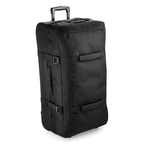 TearAway label for ease of rebranding. Convenient dual compartment design for easy packing. Lockable main compartment zip. External identification window. Removable Rip-Strip™ handle wraps for ease of decoration. Dual compression straps. High stability retractable twin-handle. Durable front grab handles. Padded top and side handles. Durable integrated skate wheels. Can be further customised with BG485 Escape handle wrap.