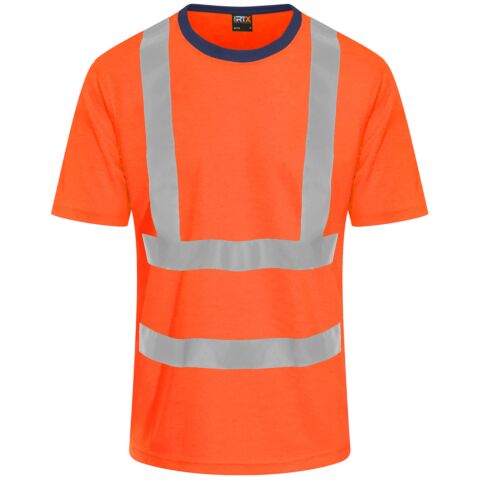 Certified EN ISO 20471:2013+A1:2016. RIS-3279-TOM ISSUE 1:2016 (Orange only). HV Orange/Navy & HV Yellow/Navy - Class 2. Ribbed contrast colour collar. Twin-needle stitching on shoulder. Twin-needle stitching on sleeve and bottom hem. Over shoulder and around body reflective tapes. Around body tape finishes before the side seam for comfort and ease of fit.
