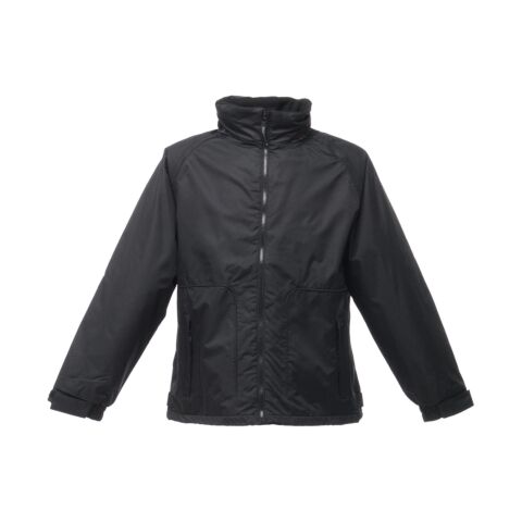 Waterproof Hydrafort polyester matrix dobby fabric with windproof fabric. 200 series anti-pill symmetry fleece lining with taped seams and fleece lined collar. Concealed hood with adjuster. Hook and loop fastening adjustable cuffs. Mobile phone pocket and 2 zipped lower pockets. Studded side adjusters and adjustable shockcord hem. Embroidery access. Thermoguard insulation to sleeves.