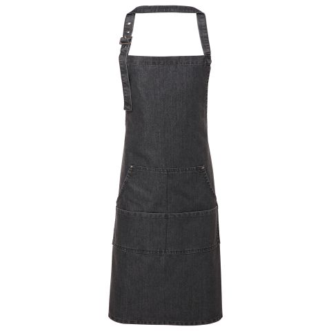 This denim bib apron is a modern solution for bars and restaurants who are looking for something a little bit different from their staff uniform. This full bib style offers hygienic coverage against spillages and can be industrially laundered to 85C. A buckle on the neckband allows the wearer to adjust the length of the apron and there are four contrast stitched pockets to the front that are perfect for carrying payment terminals and order pads. Self-fabric ties can be fastened neatly at the back, or alternatively, are long enough to double around the waist and tied at the front.