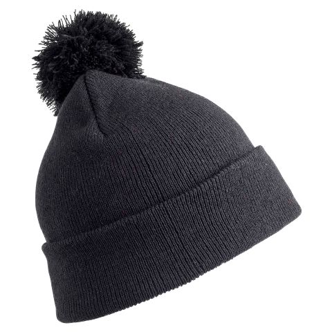 Heavyweight, double thickness knitted beanie with deep fold cuff and pom pom decoration.