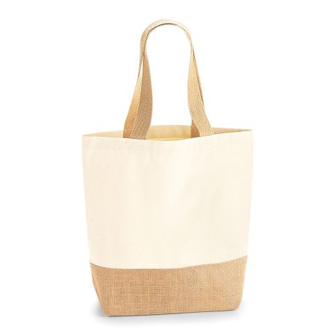 Embrace practical, sustainable style with this jute base canvas shopper. With a premium cotton canvas body, this natural carryall is a print-friendly option for custom decoration and embroidery and the hard-wearing dipped jute base has been designed with the big shop in mind.