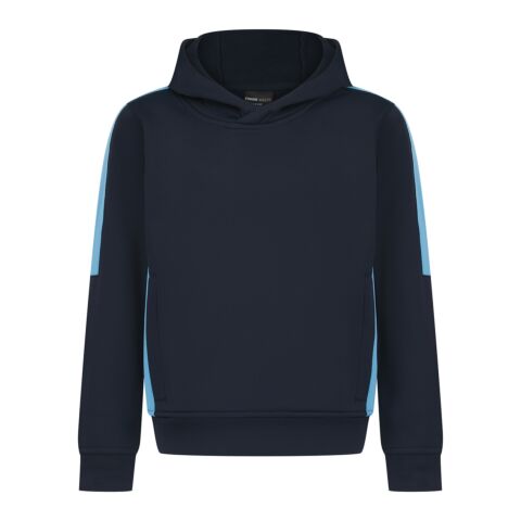 Unisex kids’ hoodie. Contrast sleeves and side panelling on contrast only. Ribbed cuffs and hem. Crossover hood neck at centre front. Zipped welt pocket in front panel side seam. Three-piece hood. Offered in contrast and solid colours. Tear-out label.
