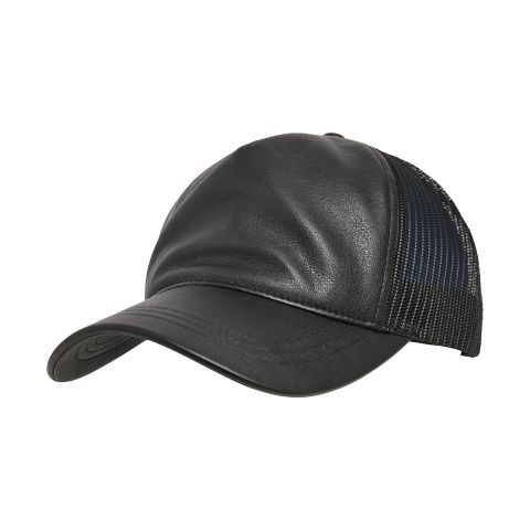 Leather meets mesh – and born is the leather trucker cap! Prepare yourself for a very special accessory that boosts streetwear style and upgrades your wardrobe with originality. The front features a soft leather look and is underlined by a pre-bent visor with decorative seams. The back is made of traditional trucker cap mesh. Naturally, a perfect fit is guaranteed by an easy to use closure on the back. Skilfully striking a pose can be so easy, so don’t be shy!