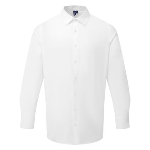 Created using materials with less impact, this best-selling men’s poplin shirt is now available in a certified recycled polyester/cotton blend. It boasts the same great easycare properties as our classic poplin but is constructed in a heavier weight and has a more fitted shape. A stiffened formal collar with top button fastening makes for a smart shirt with the option to wear it open-collared for a more relaxed look. A double-buttoned cuff with cufflink hole and a single-button sleeve guard facilitate a roll-back option. Constructed with back darts to enhance fit and shape. A great, everyday, easycare men’s work shirt.