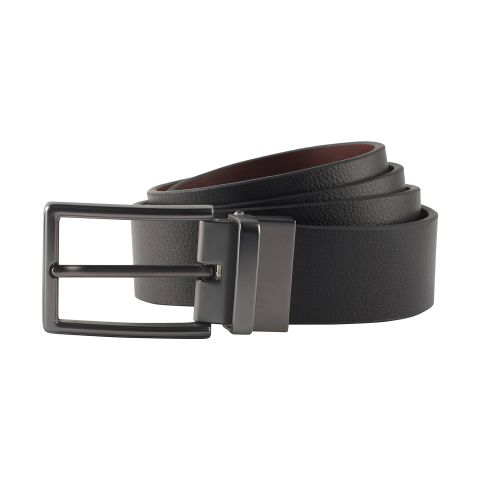 Leather two-way belt. Buckle and belt loop. Belt can be twisted to alternate between brown and black leather. Product contains no branded neck label. Removable Kimble or looped garment tags. Inner seam label holds important product information on one label with a second label containing brand information which can be cut-away.*Please note old stock may contain a fixed branded label.
