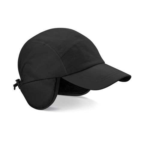 Waterproof and breathable fabric. Taped seams. Elasticated size adjuster. Optional fold-down ear flaps.