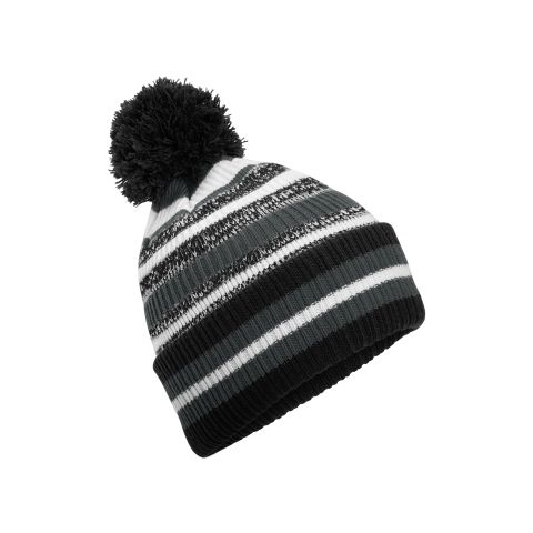 Celebrate team spirit with pride in this statement striped beanie, whether its for training or cheering on from the sidelines. Each vibrant, multi-stripe design stands out in the crowd, enhanced by a playful self-coloured pom pom. A double-layer knit, oversized cuff and soft microfleece lining deliver maximum comfort and optimum warmth. Contains certified recycled polyester.