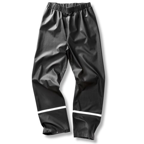 Classic, Scandinavian-styled, easy-to-wear overtrousers in deluxe waterproof PU fabric with reflective leg bands.