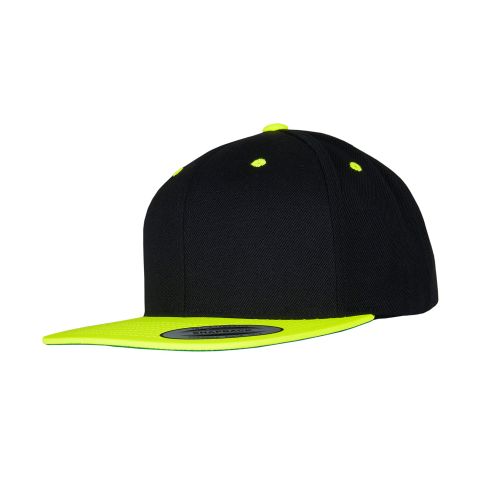 The premium classic snapback with 2-tone peak has the same classic shape but with total coordination in mind. The plastic snap is fully adjustable for a perfect fit.