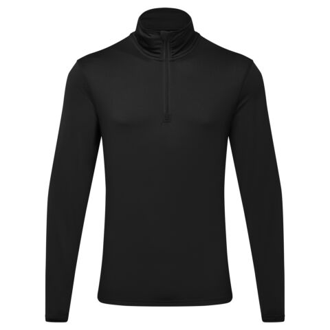 ¼ zip design. Long sleeves. Stretch. Recycled polyester. Wicking fabric. Brushed inner. The product contains no branded neck or waist label. Removable kimble or looped garment tags. The inner seam label holds important product information on one label with a second label containing brand information which can be cut-away. We recommend using block out vinyl and inks.