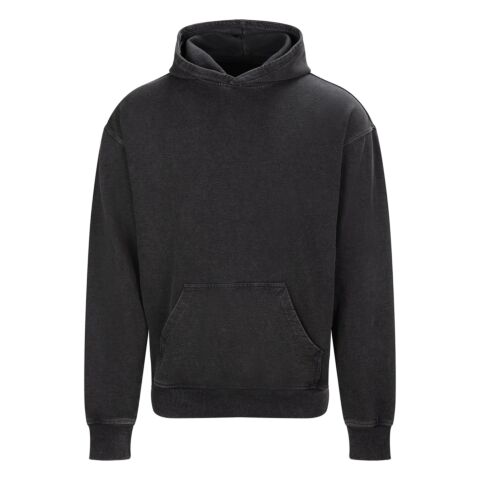 The Vintage washed hoodie combines an oversized fit with a washed finish for a street-ready look. Details include a double-layer hood, kangaroo pouch pocket and a French terry inner for everyday wear. Designed without drawcords for a clean silhouette, it features ribbed cuffs and hem, plus a locker patch and size label only – perfect for easy rebranding. Made with cotton and recycled polyester.