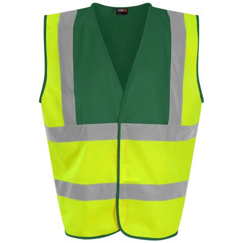 Certified EN ISO 20471:2013+A1:2016. RIS-3279-TOM ISSUE 1:2016 (Orange only). HV Orange & HV Yellow - Class 2. Two-Colour - Class 1. Solid Colours - Non Certified. Full front tear and release fastening. Over shoulder and around body reflective tape.
