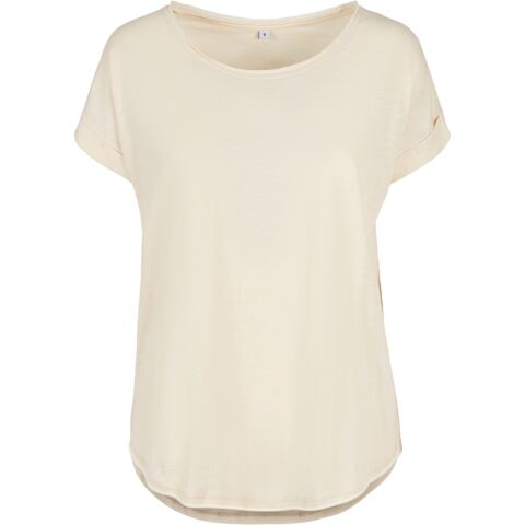 With its oversized sleeves, rounded hem and slightly elongated back, the Women's long slub tee has the classic long tee style. The wide neckline and light single jersey fabric give it a very feminine look. Ideally suited for embellishing with printing.